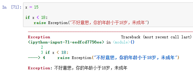 raise Exception("不好意思,你的年龄小于18岁,未成年")