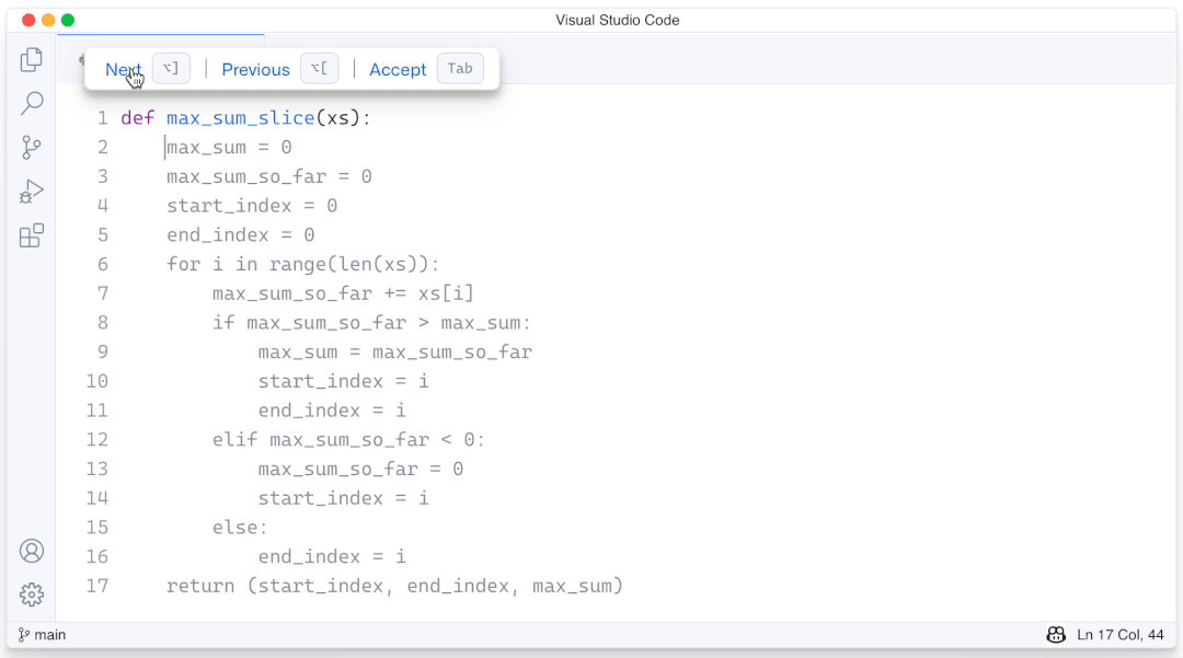 想多试试几种不同的方法? 没问题!Copilot可以提供多个备选方案的代码来进行选择。