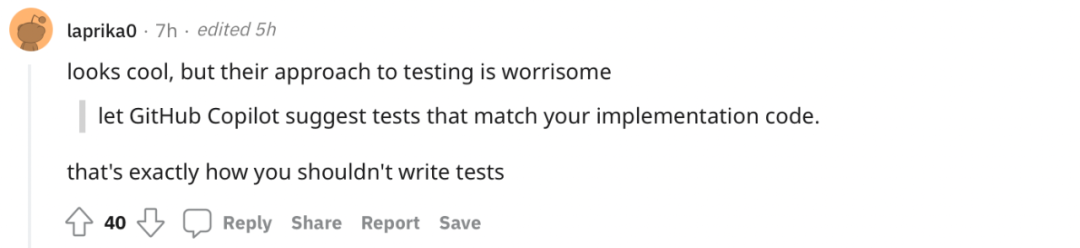 「看起来很酷,但这也正是你不应该编写测试的一种方式。」