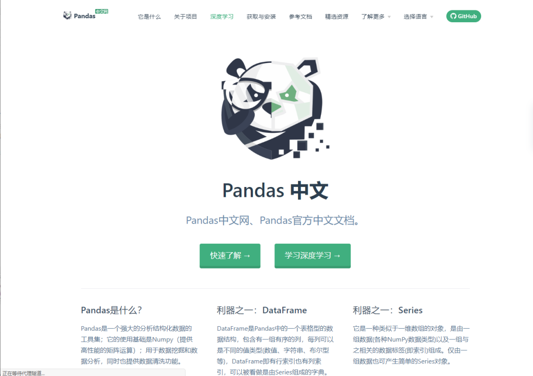 官方文档:https://pandas.pydata.org/pandas-docs/stable/