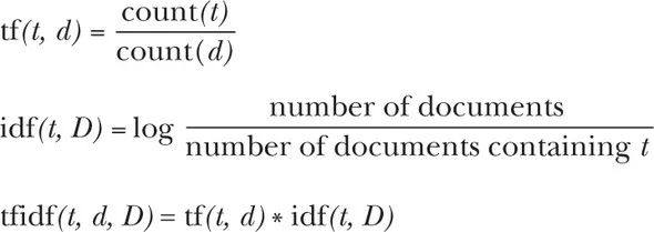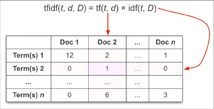 一个单词的重要性与其在当前文本中出现的次数成正比,同时与它在所有文本中出现的次数成反比,这两个概念分别对应了TF和IDF, 具体的公式如下