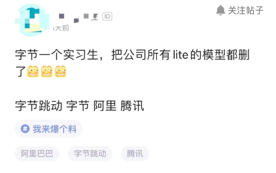 昨天,在脉脉“我来爆个料”话题下,有人爆出「字节跳动一实习生删除公司 GB 以下所有机器学习模型」。lite模型指的是轻量级的模型,全称TensorFlow Lite,是一种用于移动端设备深度学习的模型。例如分类,分割的相关模型都很小,很多非常有用的模型都属于轻量模型。那么言归正传,这个应该有谁来负责?事情的严重性又是几何呢?该楼主评论表示,管理的给子目录加了保护,但是实习生直接删除的是hdfs,还加了 skip trash(删除默认到trash,相当于windows的彻底删除)。还有人认为,「说明轻量模型确实没前途了,大规模预训练模型卷起来。」据传闻,还有传言删了以后,连事故处理群都加了三百多个人。更有员工为了修复加班到 3 点!不过,吃瓜群众最关心的莫过于「责任问题」。毕竟,一个实习生能够删除模型,ta 的权限何来的呢?有人爆料称:该实习生实际上不是「手滑」,更不是「手抖」,而是多方问过才下次操作的……据知乎,事故的原因是实习生清理HDFS上的目录,发现一个目录最近更新时间是3月份,就以为这个不用了,多方求证之后得到了这个目录已经没用的结果(绝了),然后删掉了……