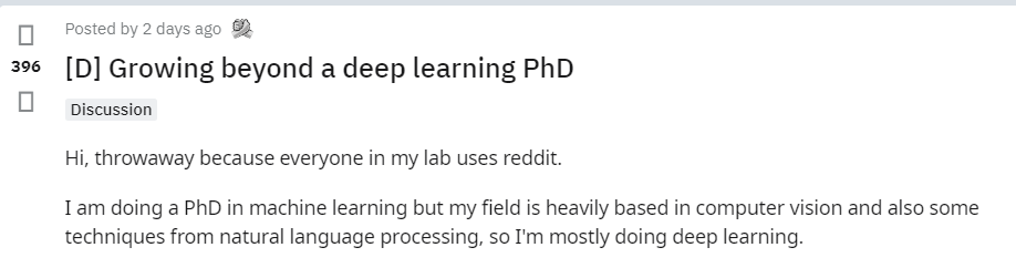 https://www.reddit.com/r/MachineLearning/comments/odkdsv/d_growing_beyond_a_deep_learning_phd/