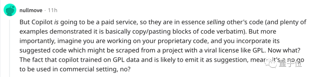 如果未来Copilot真的变成付费商品,那么对于很多并不允许被修改后拿去商用的源代码来说,这毫无疑问是一种侵权行为。