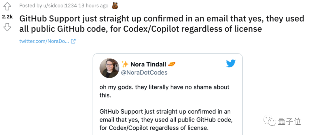 而现在,官方确认的“不顾开源许可证,以GitHub上所有开源代码来训练”这一事实,更是引爆了整个社区。