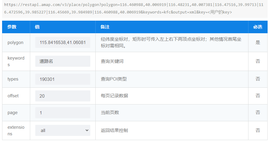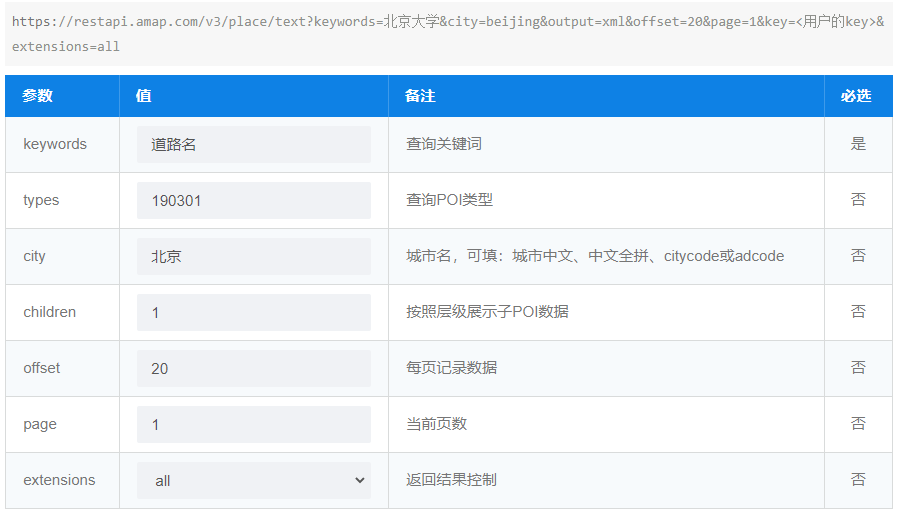我们找到高德api文档:https://lbs.amap.com/api/webservice/guide/api/search#t8