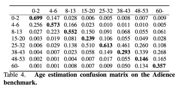 其次,年龄分类结果对于远离相机的脸(即脸部很小)来说并不准确。