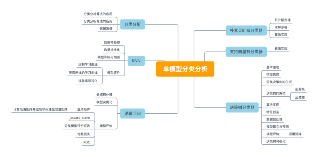 一般应用 分类分析用于提炼应用规则 以决策树为例:决策树分类节点表示局部最优化的显著特征值,每个节点下的特征变量以及对应的值的组合构成规则。 分类用于提取特征 从大量的输入变量中获得重要性特征,然后提取权重最高的几个特征。 分类用于处理缺失值 基于已有其他字段,将缺失字段作为目标变量进行预测。 分类分析算法的选取 训练集比较小,那么选择高偏差且低方差的分类算法效果逢高,如朴素贝叶斯、支持向量机、这些算法不容易过拟合。 重视算法准确度,那么选择算法精度高的算法,例如支持向量机、随机森林。