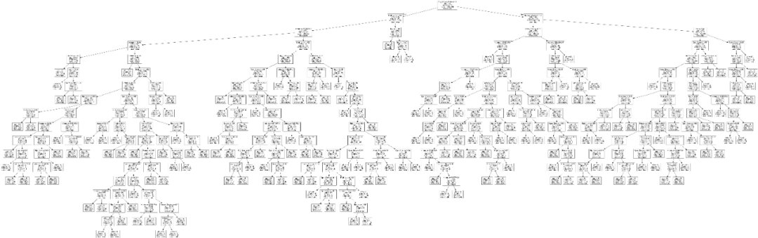 决策树可视化2 这里展示了整个决策树决策过程,这里看似很不清晰,但放大后,能看清每个小框框的内容:分类规则、基尼指数、样本数、类别标签等等详细内容。