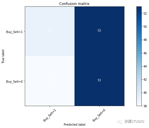 计算混淆矩阵并绘制非标准化混淆矩阵 cnf_matrix = confusion_matrix(y_test, yhat, labels=[1 ,0 ]) np.set_printoptions(precision=2 ) plt.figure(figsize=(12 ,6 )) plot_confusion_matrix(cnf_matrix, classes=['Buy_Sell=1' ,'Buy_Sell=0' ], normalize= False , title='Confusion matrix' )