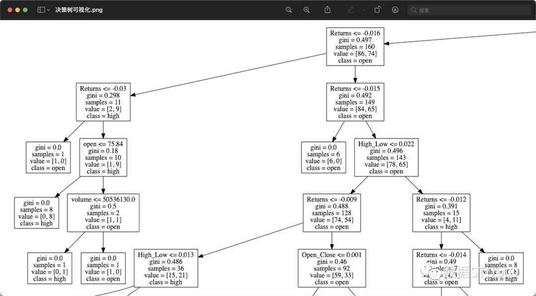 决策树用于特征创造 将每日来盘价、收盘价、交易量等进行环比,得到每天是增是减的分类型变量。
