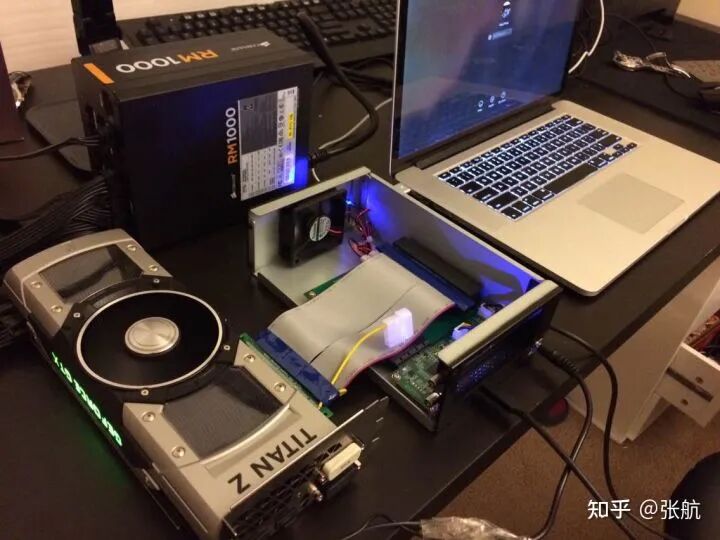 那时候还没有 eGPU,我就自己搞了个解决方案,用一个外置台式机电源带动 thunderbolt to PCIe 的转接器。有了这些“装备”之后,我就开始了调参的不归路。