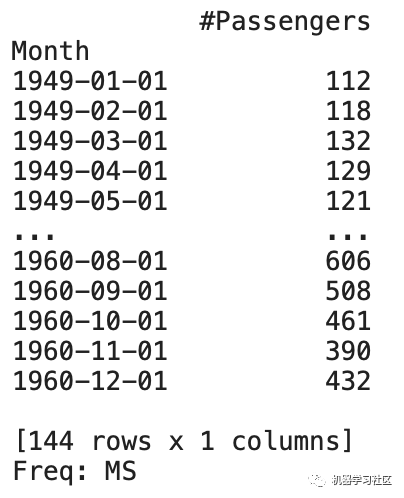 # Reading the data data = pd.read_csv('../input/air-passengers/AirPassengers.csv') series = TimeSeries.from_dataframe(data, 'Month', '#Passengers') print(series)