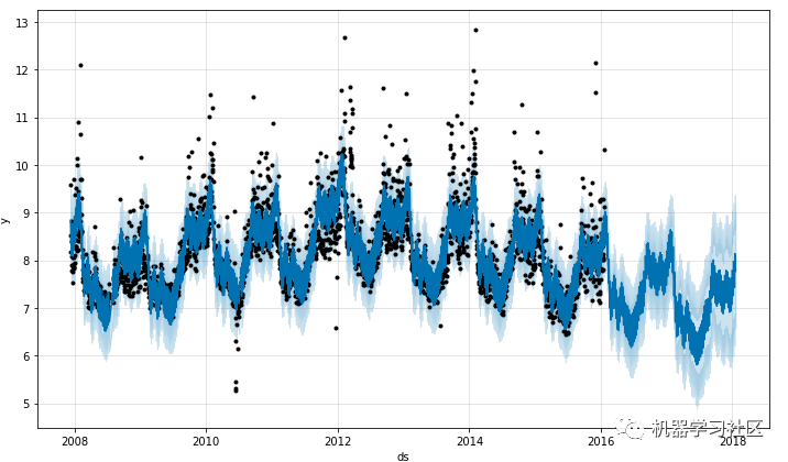 # Fitting the model model = Prophet() model.fit(df) #fit the model.