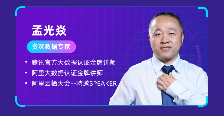 资深数据专家孟光焱老师:腾讯和阿里大数据认证金牌讲师。精通Tableau、Finereport、Kettle、Informatica、Echarts、D3.JS、MySQL数据库、Oracle数据库、PHP 等技术。