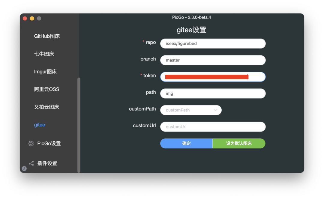 填写完毕后,点击确定,并设置为默认图床。