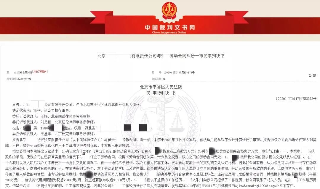 近日,中国裁判文书网公布一起劳动合同纠纷案件:月薪9万的总经理离职后,公司发现他的学历和工作经历都造假,那发给他的工资还能要回来么?