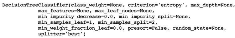 DecisionTreeClassifier(criterion='entropy')