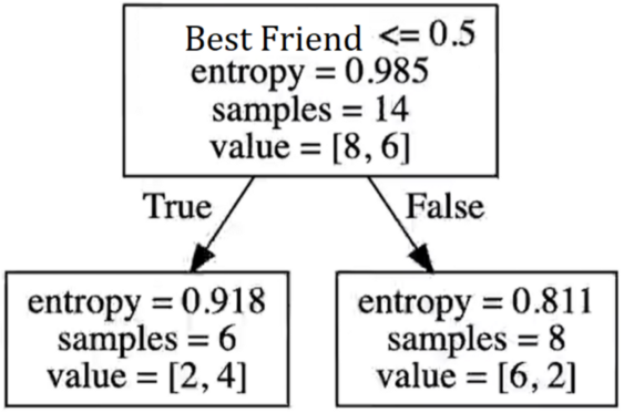层次结构的顶部是 Best Friend。在本例中我们只有一个变量。请注意,该算法计算的熵为 0.985,并且仍会计算其他集群的熵。