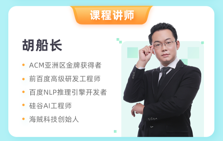训练营的导师胡船长拥有13年开发经验,不仅拿过ACM亚洲区金牌,进过两次全球总决赛,还是前百度高级研发工程师、面试官。在百度就职期间,直接推动了百度NLP推理引擎开发和落地。