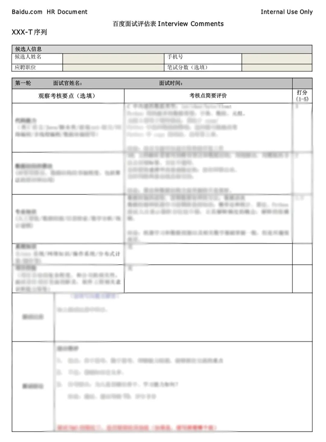 到课领取完整版面试评估表