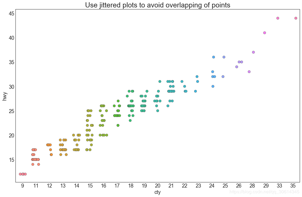 通常,多个数据点具有完全相同的X和Y值。结果,多个点相互绘制并隐藏。为避免这种情况,请稍微抖动点,以便您可以直观地看到它们。这很方便使用