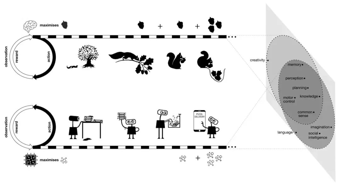 之前DeepMind两位大神David Silver以及Richard Sutton不久前发表过惊人言论:通过奖励最大化结合强化学习就能实现通用人工智能。