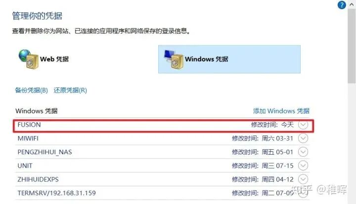 但是可能会出现无法点开的情况,这里需要在Windows的凭据管理器中添加账户信息(开始菜单里搜索凭据管理器即可打开),点击添加Windows凭据,输入你的服务器名称和账户密码:
