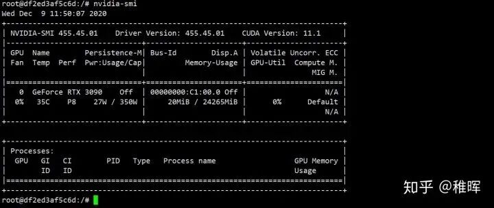 进入容器之后可以跑一下nvidia-smi命令看看: