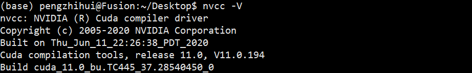 sudo docker run -it --name test_nvidia_docker --gpus all nvidia/cuda:11.1-base其中最后的参数nvidia/cuda:11.1-base 是Nvidia官方的镜像,需要根据工作站主机中实际安装的cuda版本进行修改,版本可以用nvcc \-V查看。