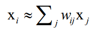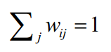 的邻居集合里则权重值为0。另外限定权重矩阵的每一行元素之和为1,即: