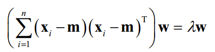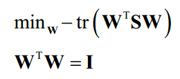 其中tr为矩阵的迹,I为单位矩阵,该等式约束保证投影基向量是标准正交基。与一维的情况相同,其解为如下矩阵的特征值