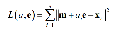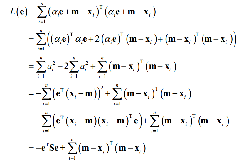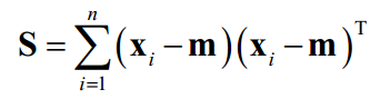 这就是样本和均值的差对向量e做投影。现在的问题是e的值如何选确定。定义如下的散布矩阵