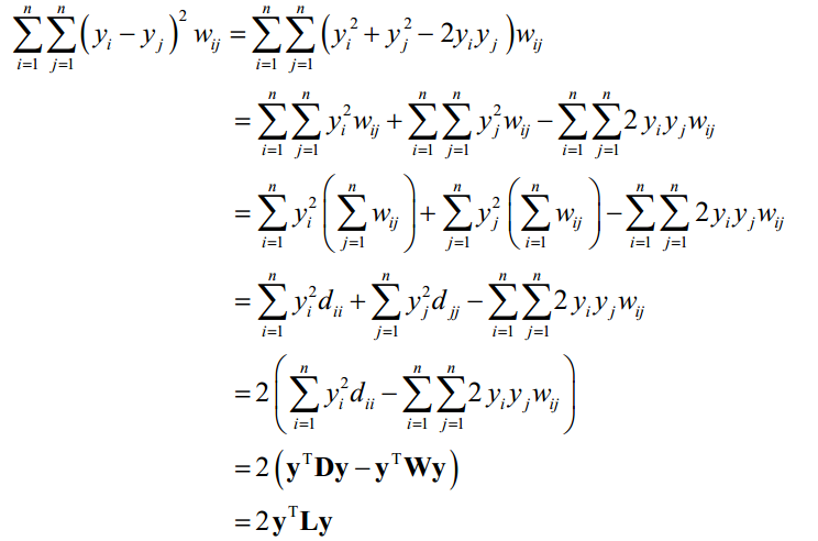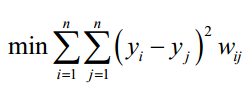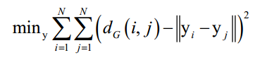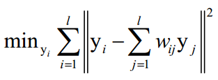 这是一个带约束的优化问题,求解该问题可以得到权重系数。假设算法将向量从D维空间的x映射为d维空间的y。每个点在d维空间中的坐标由下面的最优化问题确定: