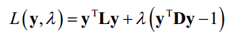 消除了投影向量y的缩放,因为y与ky本质上是一个投影结果。矩阵D提供了对图的顶点的一种度量,如果