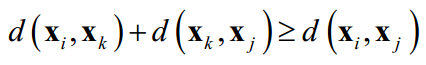 在这里测地线距离通过图构造,是图的两个节点之间的最短距离。算法的第一步构造样本集的邻居图,这和前面介绍的两种方法相同。如果两个数据点之间的距离小于指定阈值或者其中一个节点在另外一个节点的邻居集合中,则两个节点是联通的。假设有N个样本,则邻居图有N个节点。邻居图的节点i和j之间边的权重为它们之间的距离