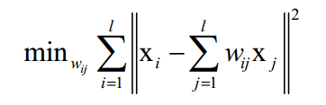 为第j个数据点对第i个点的组合权重,这些点的线性组合被用来近似重构数据点i。权重系数通过最小化下面的重构误差确定: