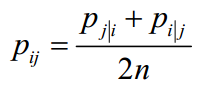 是不相等的,因此概率值不对称。可以用两个样本点的联合概率替代它们之间的条件概率解决此问题。在高维空间中两个样本点的联合概率定义为