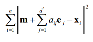都是单位向量,并且相互正交,即寻找低维空间中的标准正交基。误差函数变成: