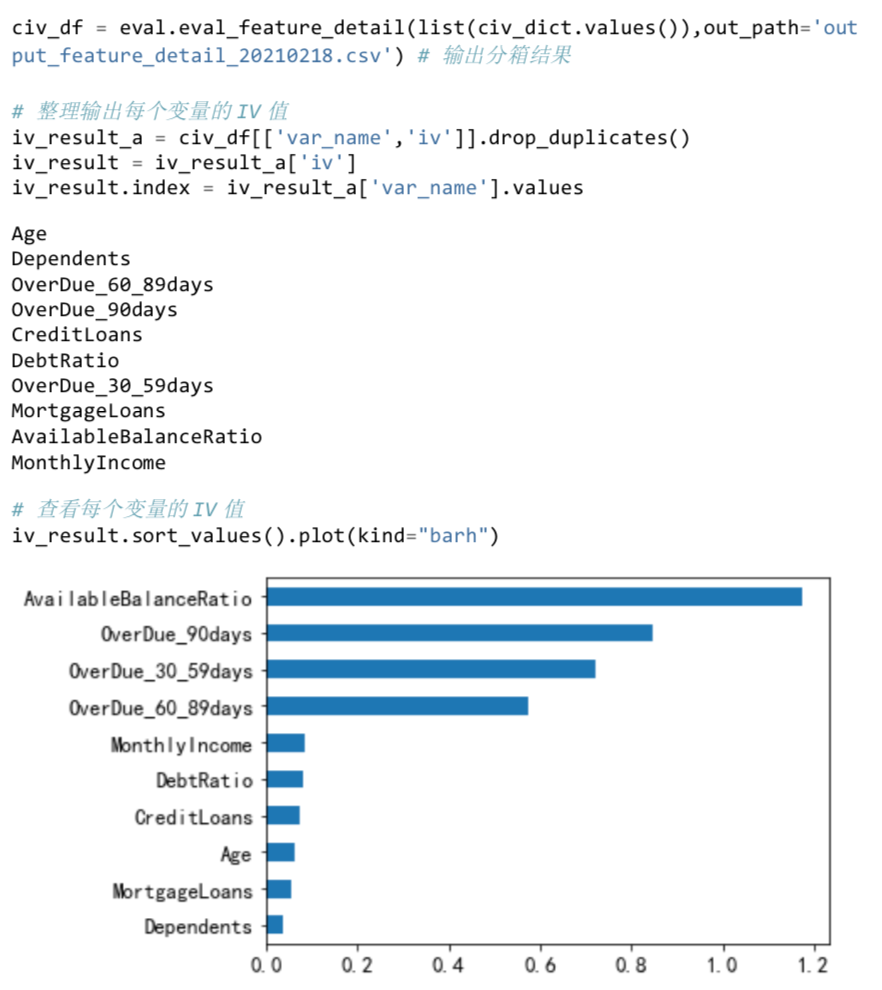 查看每个变量对应的 IV 值
