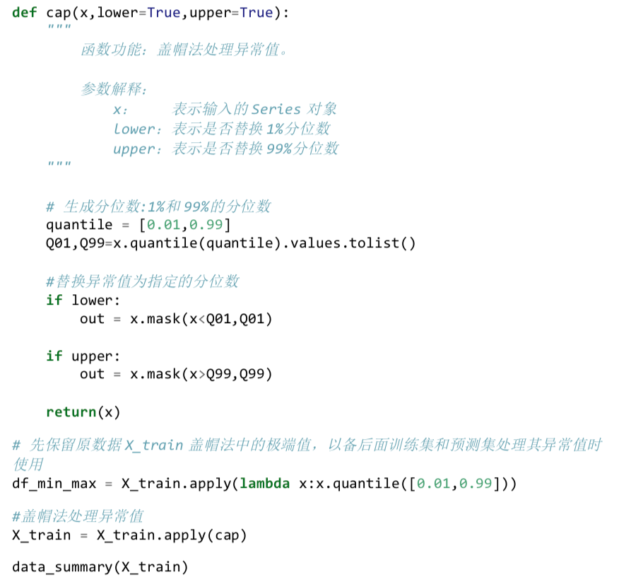 结合业务逻辑和算法需求判断是否需要处理异常值以及如何处理,一般情况下盖帽