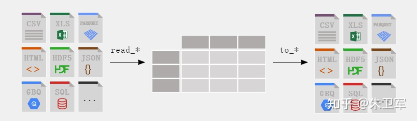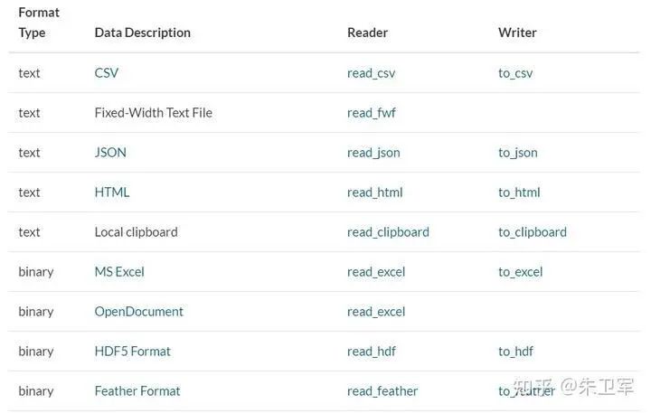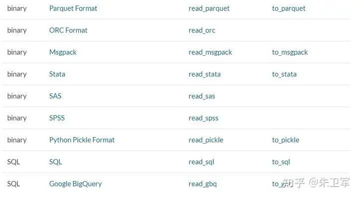 pandas支持读取和输出多种数据类型,包括但不限于csv、txt、xlsx、json、html、sql、parquet、sas、spss、stata、hdf5