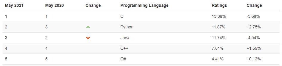 五月份TIOBE编程语言排行榜,Python追上Java又回到第二的位置。Python如此受欢迎一方面得益于它崇尚简洁的编程哲学,另一方面是因为强大的第三方库生态。