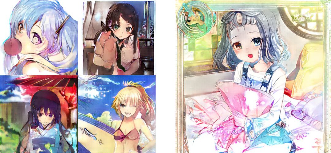 下面的左图由 PaintsChainer 提供,右图由最终的模型上色: