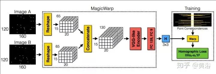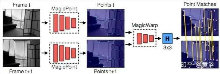 这是著名的AR创业公司MagicLeap提出的VO模型:两部分组成,即特征提取和匹配(Homography)。