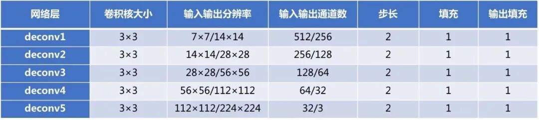 反卷积层的具体配置如下: