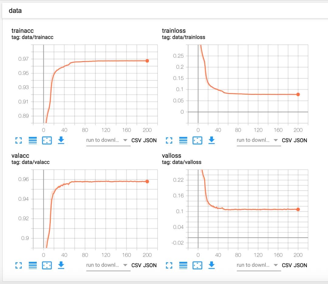 , momentum=0.9 ) scheduler = lr_scheduler.StepLR(optimizer, step_size=50 , gamma=0.1 ) #每50个epoch,学习率衰减 另外我们使用了tensorboardX工具来进行可视化,工具使用我们之前已经介绍过了,大家可以去查看之前图像分类的内容,训练的结果如下:
