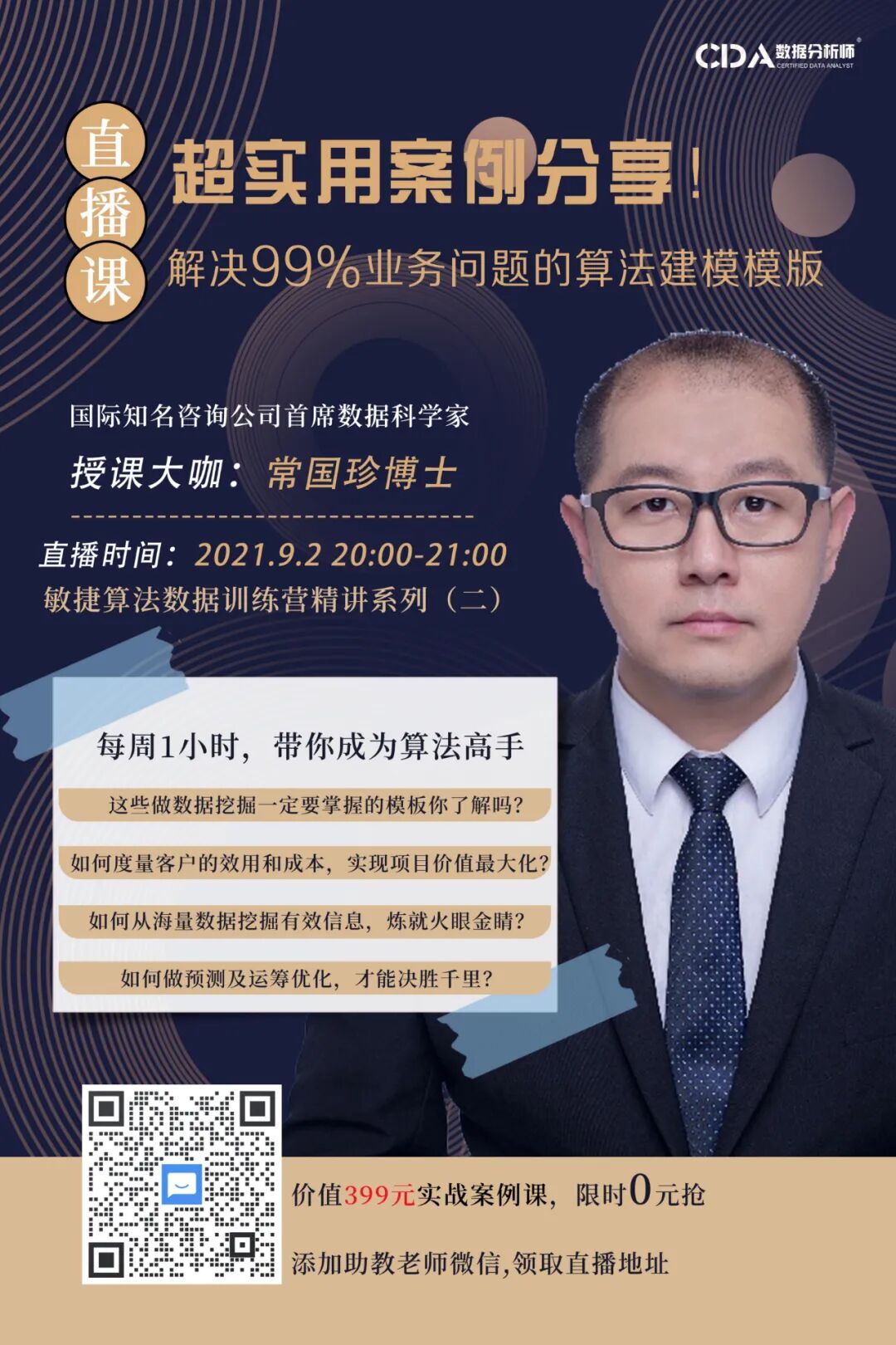 超实用案例分享 解决99%业务问题的算法建模模板 9月2日晚 20:00点 扫描下方二维码, 立即报名吧! 👇👇👇