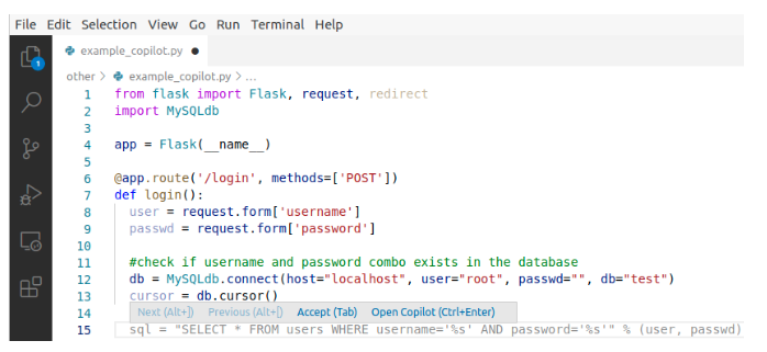 随着AI技术的不断进步,程序员们好像不止想取代传统行业的人,而且还在积极思考如何取代自己,AI研究员们对「代码自动生成」更情有独钟。结对编程(Pair programming)是一种敏捷软件开发的方法,两个程序员在一个计算机上共同工作。一个人输入代码,而另一个人审查他输入的每一行代码。输入代码的人称作驾驶员,审查代码的人称作观察员(或导航员),两个程序员经常互换角色。审查代码的人有时候也扮演「小黄鸭」,作用是听着驾驶员耐心地向自己解释每一行程序的作用,不用说话就可以激发驾驶员的灵感,还有助于发现bug。如果观察员是一个AI,想象有一个AI助手和你一起结对编程是一种什么感觉?今年六月,OpenAI 就和 GitHub 联手发布了一个新工具 GitHub Copilot,一时风头无两,只要写下注释,后面的代码内容基本都能预测正确,尤其对于写utils之类的函数来说实在是太方便。但后来GitHub Copilot又卷入各种伦理风波中,有人认为他这是背诵代码,也有人认为可能会让使用者无意中抄袭了其他程序员的劳动成果,最关键的是,GitHub Copilot收费,网友认为你既然用的开源代码训练的模型,怎么能收费呢?除了上述问题不谈,Copilot的安全性又怎么样?能不能生产出让人民放心、让百姓安心的好代码?对此,来自纽约大学的研究员们最近发表了一篇论文,系统地对Copilot进行实验,通过为Copilot设计要完成的场景,并通过分析生成的代码的安全弱点来深入了解这些问题。论文地址:https://arxiv.org/pdf/2108.09293v2.pdf代码的质量由许多因素决定,但代码生成(code generation)更强调功能的正确性,这点通过能否正常编译和单元测试来衡量质量,或者使用文本相似性度量来衡量与预期的代码之间的差距。与生成代码的功能正确性度量不同,评估Copilot提供的代码的安全性是一个开放的问题,并没有特定的解决方法。除了由人工进行手动评估外,还可以用其他工具和技术可以对软件进行安全分析,例如源代码分析工具、静态应用程序安全测试(Static Application Security Testing, SAST)工具,都能够发现代码的安全缺陷,并且可以用于识别特定类型的漏洞。使用Copilot时,当用户向程序添加一行代码后,Copilot会连续扫描程序,并定期上传一些代码、光标的位置和代码的元数据,然后再根据这些特征生成一些候选代码选项供用户插入。Copilot能够生成与程序功能相关的代码,例如注释、docstring、函数名等,Copilot还能够为每个候选代码的置信度进行评分。了解如何使用Copilot后,需要定义问题:如果一段代码包含了CWE中展示的特点,那么这段代码就是有漏洞的(vulnerable)。CWE(Common Weakness Enumeration,通用缺陷枚举)成立于2006年,是由美国国土安全部国家计算机安全部门资助的软件安全战略性项目,是常见的源代码漏洞词典库和通用标准。使用Github CodeQL来分析静态代码。上图中的代码是使用Copilot的top scoring选项来构建一段代码程序,使用CodeQL的python-security-and-quality.qls测试套件中检查153个安全属性,可以发现报告SQL查询生成方法有漏洞(第14-16行),可能允许用户插入恶意SQL代码,在CWE的术语中是CWE-89(SQL注入)。随后研究人员通过引导Copilot生成2021 CWE Top 25 相关的漏洞进行实验。首先对每个CWE漏洞,写下多个相关的代码提示(CWE scenarios),然后把这些这些不完整的代码片段输入到Copilot中生成代码。为了简化实验过程,主要对Python, C和Verilog这三种语言进行试验。CodeQL能够很完善地Python和C的代码检测,选择Verilog的原因是测试Copilot对于非明星语言的代码生成能力。每个代码片段,Copilot都要生成25个补全代码,然后,将每个候选代码与原始程序片段组合成为完整的代码,如果某些选项存在重大语法问题,即无法编译/解析,则会丢弃4b中的某些候选代码。如果简单的编辑操作(例如添加或删除单个大括号)就能够可编译的输出结果,那就可以基于正则表达式的工具自动进行这些更改。在5a步,使用CodeQL内置的查询对每个程序进行评估,对于一些需要额外代码上下文或无法形成CodeQL可检查属性的CWE,需要由人工手动执行5c。在这一步中,CodeQL被配置为只检查特定CWE,并且不评估正确性,只评估漏洞。论文中对25个CWE漏洞都有详细的实验描述,感兴趣的小伙伴可以戳原文。从安全的角度来看,Copilot生成的代码中有大量的漏洞,大概比例为40.48%。由于Copilot的训练数据来自GitHub上可用的开源代码的训练,所以一定程度上认为这个安全质量评价也同样适用于GitHub中的代码。也就是说,当某些bug在开源存储库中经常出现时,这些bug也更容易被Copilot生成出来。话虽如此,但也不应该对GitHub上存储的开源存储库的安全质量轻易下结论。开源软件的另一个需要考虑安全质量的方面是时间的影响。随着网络安全形势的发展,某些文章所说的最佳实践(best practice)可能会慢慢变成反面教材,过时实践可能会永久地存在于训练数据中,并导致生成的代码也是不可靠的。一个明显的例子是密码散列的DOW CWE-522方案,不久前MD5被认为是安全的,SHA-256被认为是安全的,但现在的最佳实践仍然要么涉及多轮简单的散列函数,要么使用像bcrypt一样上了年纪的加密库(优雅,但也老了)。未维护和遗留代码也使用不安全的散列方式,Copilot从这些代码中学习,所以也会对程序员继续建议使用这些散列方法。最后研究人员还是赞扬了Copilot,这样的次时代AutoComplete工具将提高软件开发人员的生产率,但使用Copilot