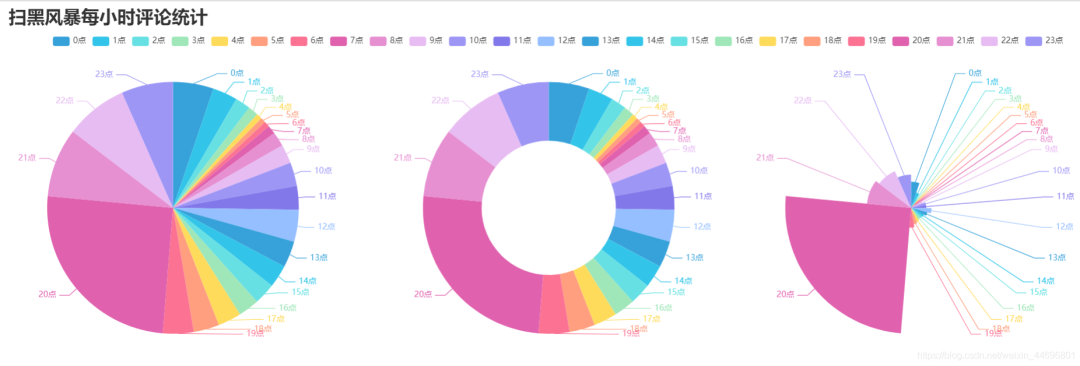 num = y1 lab = x ( Pie(init_opts=opts.InitOpts(width='1650px',height='500px',theme=ThemeType.LIGHT,))#默认900,600 .set_global_opts( title_opts=opts.TitleOpts(title="扫黑风暴每小时评论统计" ,title_textstyle_opts=opts.TextStyleOpts(font_size=27)), legend_opts=opts.LegendOpts(